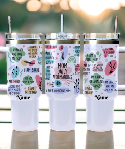 Celebrate the extraordinary mom in your life with our Personalized Mom Affirmations Tumbler – the perfect birthday or Mother’s Day gift from children or birthday gift from your daughters. This tumbler is more than just a vessel for her favorite beverage; it’s a daily dose of love and positivity. Adorned with heartfelt affirmations personalized just for her, it’s a thoughtful reminder of the incredible impact she has on her children’s lives. Crafted for both style and functionality, this tumbler is a unique and meaningful way to show your appreciation and love. Make every sip a moment of joy with a gift that reflects the warmth and gratitude your mom deserves.