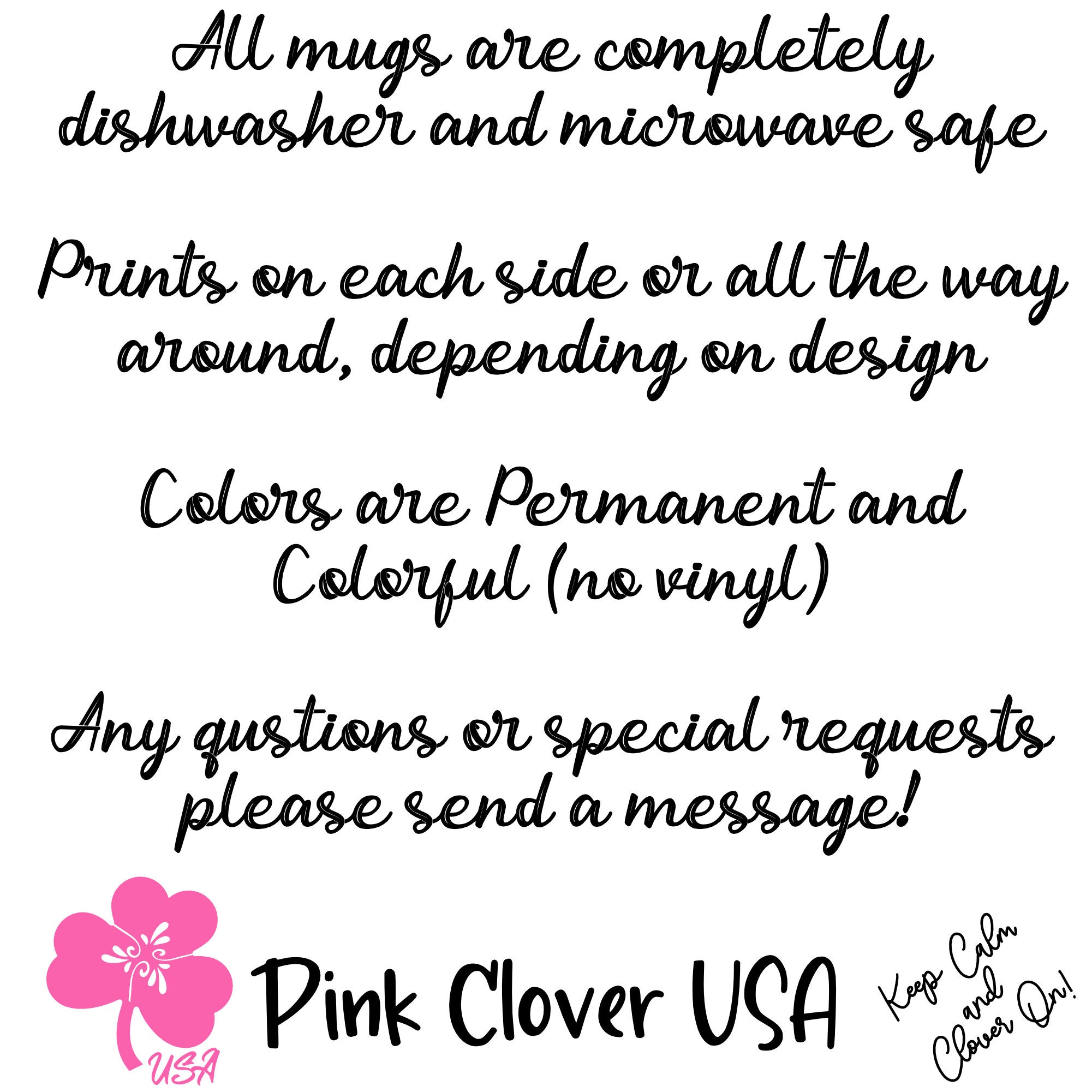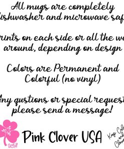 15 Ounce ceramic coffee mug. All coffee mugs are individually made to order. They are microwave and dishwasher safe. Most can be personalized with a color, name or saying. Colors may appear different in person.