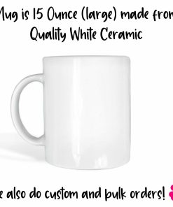 15 Ounce ceramic coffee mug. All coffee mugs are individually made to order. They are microwave and dishwasher safe. Most can be personalized with a color, name or saying. Colors may appear different in person.